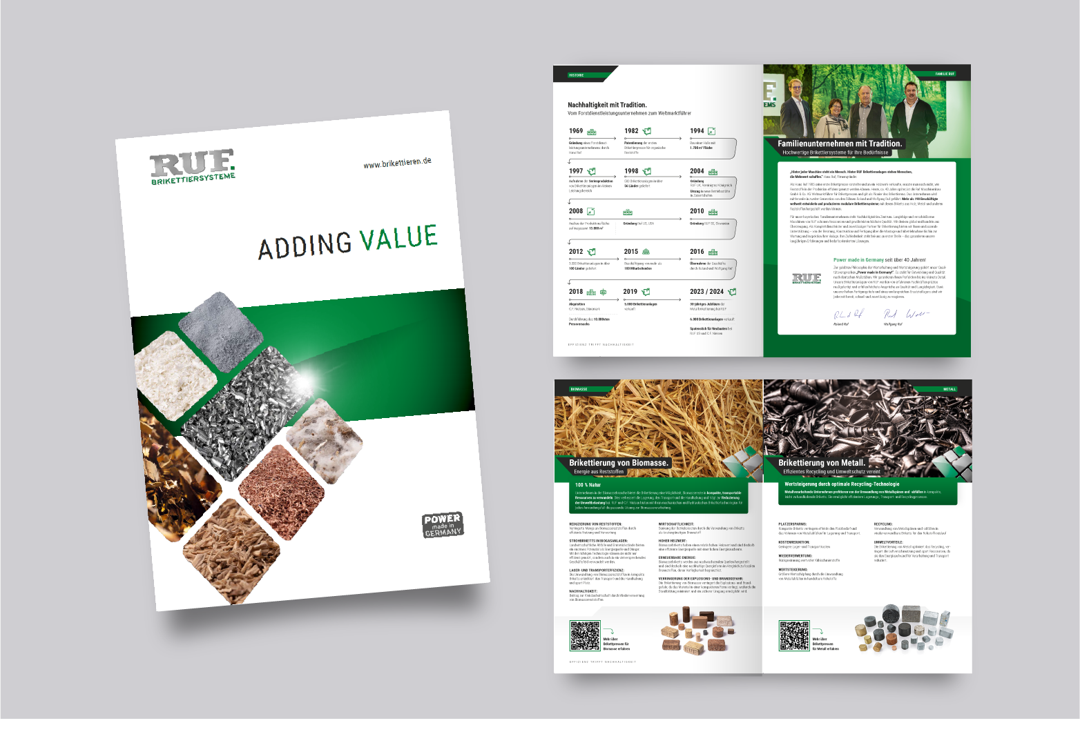 Брикети RUF мають форму прямокутника, звичайні розміри 6.0 х 9.5 х 15 см. Виробляються з подрібненої деревини будь-яких порід (тирса, тріски, кори), не містять у собі склеювальних речовин і оптимальні щодо ціна-якість. Свою назву отримали від назви фірми RUF, лідера та основоположника виробництва гідравлічних пресів. Більшість підприємств виробників брикетів працюють на обладнанні RUF, тому що дане обладнання має великий ресурс, невибагливе до сировини та умов експлуатації. RMP - це обладнання для виробництва паливних брикетів та деревообробне обладнання.